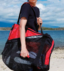 フル器材とウエットスーツが余裕ではいるメッシュバック! 従来品よりも10%以上の収納力がUP。